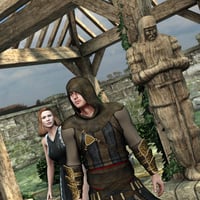 A highly detailed scene with a sculptured Pergola that includes four wooden knights on each corner post. There are four separate ivy plants for use with the Pergola, plus a set of box hedge props. The walls and base are also separate, so that each part of this scene can be used in other scenes if needed. Includes one IBL light set for Poser and four pose sets for Michael 4 and Victoria 4. Also included is a null figure for better movement when using the couple poses.