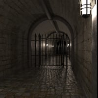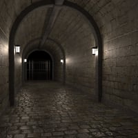 Gated Vignette features a detailed stone and brick tunnel interior with lamps and working gates Optimized for Studio with Iray.