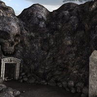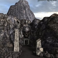 Most parts of this fantasy mountain scene can be hidden or moved for better camera angles, these include each side of the gorge and tunnel. These is a detailed entrance, two obelisks, rocks/boulders and skulls on the tunnel floor. Included is a background plane with sky photo attached, also a background mountain prop which can along with the sky plane be moved around. There is one Poser IBL light set included.What's Included and Features