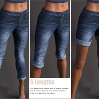 The Super Jeans turns into 5 different lengths from full length to 7/8 length, knee-length shorts, thigh-length shorts and cut-off hot pants.