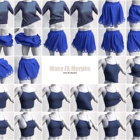 Each clothing piece comes with installed a set of Genesis 8 Female and Victoria 8 morphs, all other morphs follow through Daz Studio auto-follow. Most clothing items come with quality dynamically simulated FX morphs for undressing effects.
