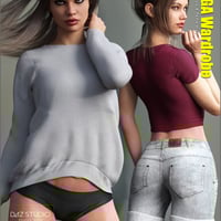 The MEGA wardrobe brings you a camisole, a short sleeve shirt, a t-shirt, a sweater, shorts and the Super Jeans with 5 different lengths to choose from. All of the included models come with a high quality and high resolution textures with material options for Daz Studio Iray.