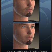 Will Dupré and Cris Palomino bring you a morphing beard for your Genesis Figure. You'll find Morphs in the Beard's General Parameters to give fullness, lengthen and bring the moustache over the lip. The Beard1 styles have denser layers to help with these fuller morphs.