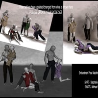 Pose matching/draping morphs are included for Basic Male, Michael 5, David 5, Hiro 5 and there is an added bonus set of morphs to match the Enchantment pose set that allows Michael 5 to loan his shirt to Stephanie 5 and still keep his pants on!.