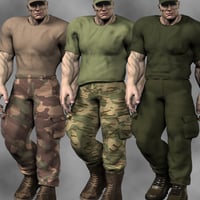 Choose your patterns amongst 11 high resolution texture families, and fine tune your outfit shape and style with the many additional morphs included. The T-Shirt can go inside or outside the trousers, and have more folds on the front, back, side and hips. The trousers can go inside and outside the boots, pockets can be full or flat, and the crotch bulge can be shaped. The boots can look new or old, the cap can be morphed on the peak and global shape levels separately. All of this with different style options.