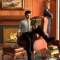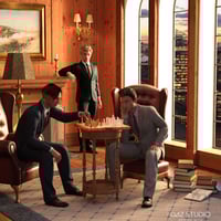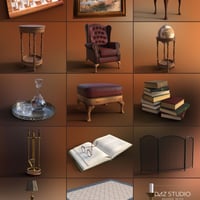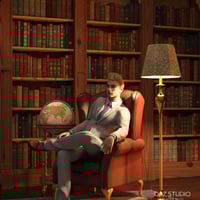 The set includes a preset library setup as seen in the promotional images and 10 Genesis 8 Poses of gentlemen that interact with each other and the library furniture.