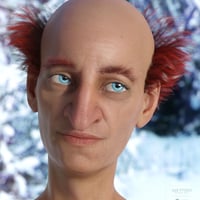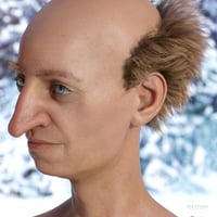 Georgie Hair and Brows include a morphing polygonal model of men's bushy and balding hair plus bushy brows. The hair has an articulate rig for posing and shaping, with 4 bones for the hair sections. Along with the style and movement morphs, ERC pose control dials help fit your figure poses beyond the 7 sample hair poses provided. They is fitted for Genesis 3 & 8 Male(s) (.DUF) with auto-conforming custom morphs for Daz Original characters.