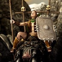 Saddle and tack for the Giant Fantasy Spider by Predatron. Comes with two versions, a Web Frame and a Skull Frame, each available in high and low resolution. There is also a set of traveling items like bags, gourd and quiver. All parts are smart props and can be hidden or deleted if not needed. The Skull Frame comes with a banner and four texture options with high and low resolution options. There are scaling and sitting poses to fit Predatron's Goblin and Michael 4.