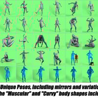 Also included are mirrors for each pose, and pose variants for the Curvy and Muscular body types.
