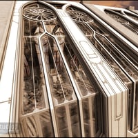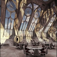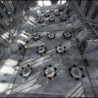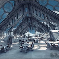 Created in a futuristic gothic style, GIS Orion is an interior hallway area with seating that you can remove or rearrange as needed. This versatile 3D science fiction scene might be a starship deck with a view across deep space, or part of a futuristic skyline.