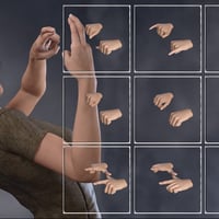 There are 45 hand poses in 3 broad categories: closed hands, open hands, and gestures. With both left and right poses, and versions for both Genesis 3 Female and Genesis 8 Female, you get 180 different hand poses!