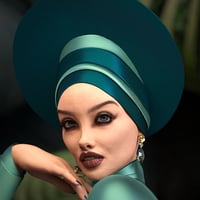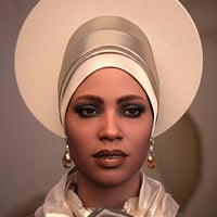 Increase your digital fashion looks with this fourth set, including a sort of turban with a brim and meticulously crafted, fitting earrings.
