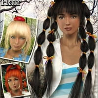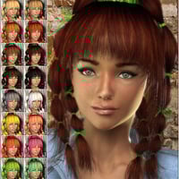 Glaukia Hair is a wonderful hairstyle full of youth and enchantment. This conforming hair is fitted for Victoria 4 , Aiko 4, and the Girl 4. Includes hair prop, twenty-nine fit poses for several figures, and twenty fantastic colors.