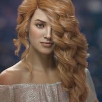 Gloriana Hair is a morphing, polygonal model of long hair side-swept into big and soft curls. The hair is fitted for Genesis 3 Females and Genesis 8 and 8.1 Females (.DUF) with auto-conforming custom morphs for Daz Original characters.