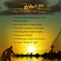 One of the GNBD Silhouette series which includes one hundred and ninety high resolution (most are 2500px) fishing silhouette brushes, all you need to create a professional fishing scene.