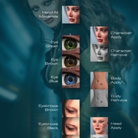 Includes Character preset with face sculpted morph with many texture options for eyes, eyebrows, face paint & makeup.
