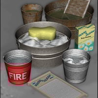 Wash your laundry! Wash your pets! Wash your figures! Brighten your virtual world with this versatile set of props suitable for a variety of scenes. Use to wash cars, catch fluids, fight fires, as a handy step or a convenient stool. So, get the Good & Clean Tub and Pail Set and get the job done. A Capsces Digital Ink product. Works in Poser 6, Poser 7, and DAZ|Studio.