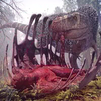 The Gore Pack comes with a large, bloody, and mostly devoured Alamosaurus carcass complete with Iray and 3Delight material presets.