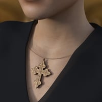 From the Medieval Era to the Digital Age, meet these fellow Gothic Pendants: a Trefoil Cross, with the heroic grace of the filigrees; a Gothic Cross, cast with the strength of the faith; and a Silver Gothic pendant, in old bronze and worn silver.