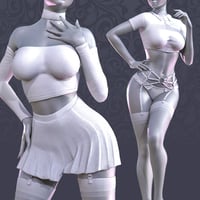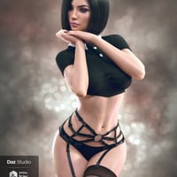This gothic inspired rebellious outfit is sure to turn heads and draw some attention. This product includes two shirt variations, two choker variations, a skirt, garter belt, stockings, two underwear variations, lip and nose rings. Many morphs are included to adjust the clothing.
