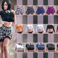 The Shirts and Skirt come with five material preset that can be mixed and matched.