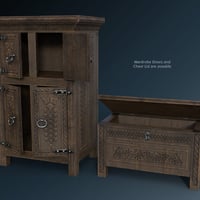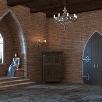 Tables and chair come with adjustment morphs to fit them to your figure's pose, the gate as well as the wardrobe doors and the chest lid can be opened. The curtain features various styling options.