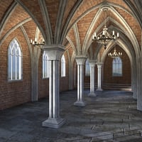 A vault that can go from massive walls to dainty columns, a big gate, a window niche, a plain wall, a ceiling, a floor, and several pieces of furniture offer lots of different possibilities.