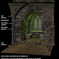 Gothic window is simple backdrop with part of gothic interior, but it can easily be combined to formed much larger interior hall. Despite this simple concept this is rather versatile and universal interior prop, usable for historical, romantic, fantasy, horror and many other genre projects.