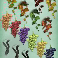 Included are three bark materials, six grape materials and six leaf materials, both optimized for DAZ Studio and Poser. The Poser files are in native Poser format and come as a separate zip file, no importing of DS files is required. The DS materials use SSS for the grapes for a realistic look, the Poser files include presets without SSS for older Poser versions and presets with SSS for Poser 9 or newer.