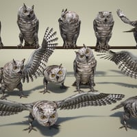 Camouflaged with striated fur and feathers to blend in better with the trees, this mystical hoot owl model comes in both brown and grey plumage for more rendering pleasure.