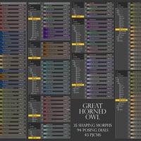 One hundred posing dials are provided for a wide range of motion, along with 26 pose presets (13 flying and 13 standing poses) to get your night bird flying. Thirty-five additional shaping morphs allow you to alter the body and head shape for greater versatility.