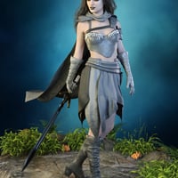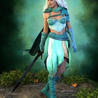 Green Queen is a Druid or Shaman, a creature who comes from the wildness. The four different material sets are inspired in a different worlds; the forest, the lake, the stones and the dark underworld. It's a full fantasy clothing set for Genesis 3 Female(s), includes ten props and feet pose.