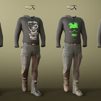 Gruesome Goth textures adds 4 highly detailed texture sets to this awesome goth outfit. All items in the set; Goggles, Shirt, Hoodie, belt, Pants and Boots have 4 sets of textures to add more options to this gruesome get up..
