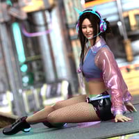 - A cyber anime k-pop styled outfit with a bonus cute cyberkitty companion