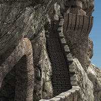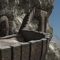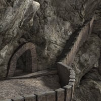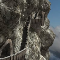 Built over generations, and exposed to the elements, they look worn and battered, yet still sturdy. The entire scene is parented and can be resized if necessary. The small mountain exterior only dwellings on the upper platform are included, and can be easily hidden or replaced allowing for other other architectural elements and looks in the distance.