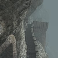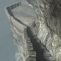 Halfway Up The Mountain pays homage to those cut stone stairs that cling against the sheer cliffs around the world in various places and cultures. No point letting gravity get in the way of progress.