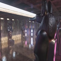 Enter the Halls Of Anubis, a detailed scenery featuring HD scans of Anubis statues, lots of pillars, Egyptian-inspired architecture with a touch of sci-fi, fog effects and cool lights. What can go wrong?