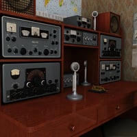 Ham radio equipment setup for home broadcasting or pirate radio etc. Equipment is from the late 50's to 70's era so has a great retro look for scenes requiring props like these.