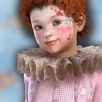 Delicate skin textures with four eyebrows colors to match any hair color you want to use. Plus two bonus face textures: one with milk around the mouth and a clown make-up. Six eye colors and five eyelashes colors. Material presets included for DAZ Studio and older Poser versions and also SSS material presets for Poser 9 / Pro 2012.