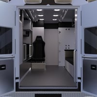 The Hauler Z350 Ambulance features 4 outer cabinets as well as 8 interior cabinets with rigged doors.