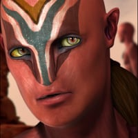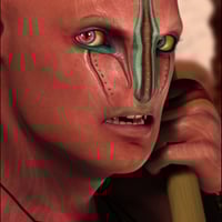 This fantasy character for Michael 4 includes custom morphs, detailed skin textures, stunning eyes colors, and face painting variations.