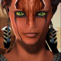 This fantasy character for Victoria 4 includes custom morphs, detailed skin textures, stunning eyes colors, face and body painting variations.