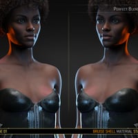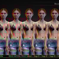 While the materials for the bruise stages already apply a specific value to the opacity channel, additional opacity presets have also been included to help you refine the final look. And since the presets are applied via a geoshell, not only is the load time for LIE vastly reduced (as the LIE only applies a mask to the cutout opacity channel), but you can control the look regardless of how your character skin has been set up, and you can tweak in a non-destructive way from within the comfort of Daz Studio s surface pane. You can likewise mix and match materials by applying more than one bruised geoshell (as shown on the cover).