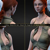 The pack consists of 2 geoshell wearables, 7 material presets, 22 LIE mask presets, and 6 partial material presets for further customization. The product works with both Genesis 8 and 8.1* Females.