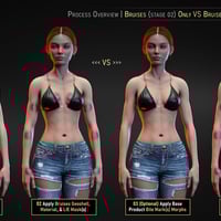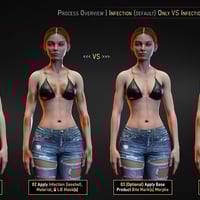 22 HD Morphs and 23 Shaping Presets | Eleven unique morphs with eleven mirror options and 23 Shaping Presets for a faster application. Remember that you can dial them in full or partially for even more variation! You can dial the morphs to the fullest for a deep wound or to accentuate the infections, or dial them less for a scar-like effect or the latter stages of the bruises, showing the character is in the process of healing.
