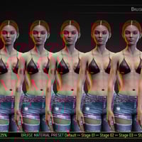 18 Material Presets | One fresh wound, 2 scars, and 2 blood material presets in the base product. There are 7 bruise material presets corresponding with different bruise stages and 6 infected material presets to show different colorations.