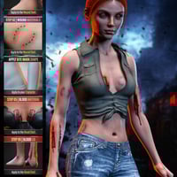 HD Bite Marks for Genesis 8 and 8.1 Females is a set of 11 HD morphs of human bite marks with a mirror version with several textures that cover a wide range of use, from a fresh wound with pouring blood to faded scars. Whether your character was bitten by a feisty human, a creeping demon, or a hungry zombie, the choice is yours!