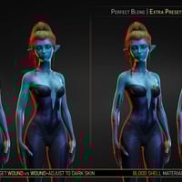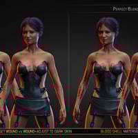 You’re free to dial the morphs to the fullest for a deep wound or dial them less for a scar-like effect. Opacity presets have also been included to help you refine the final look. And since the presets are applied via a geoshell, not only is the load time for LIE vastly reduced (as the LIE only applies a mask to the cutout opacity channel), but you can control the look regardless of how your character skin has been set up, and you can tweak in a non-destructive way from within the comfort of Daz Studios surface pane. You can likewise mix and match materials by applying more than one wound geoshell (as shown in the cover).