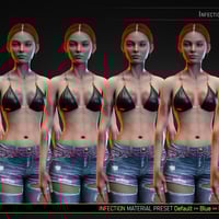 Opacity presets, moisture presets, and displacement presets have also been included to help you refine the final look. And since the presets are applied via a geoshell, not only is the load time for LIE vastly reduced (as the LIE only applies a mask to the cutout opacity channel), but you can control the look regardless of how your character skin has been set up, and you can tweak in a non-destructive way from within the comfort of Daz Studio s surface pane. You can likewise mix and match materials by applying more than one infected geoshell (just be sure to tweak the offset if needed).
