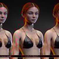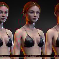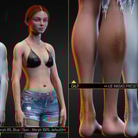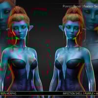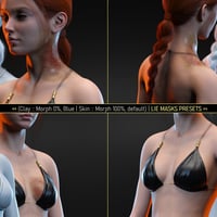The pack consists of 2 geoshell wearables, 6 material presets, 20 LIE mask presets (2 of the morphs are unsupported- Neck Base Left and Neck Right), and 9 partial material presets for further customization. The product works with both Genesis 8 and 8.1* Females.